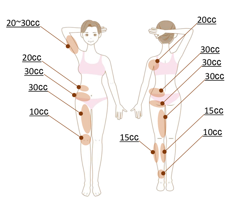 そこで、新しいFATBURNでの片側あたりの注入量の目安をイラストにまとめてみました!
